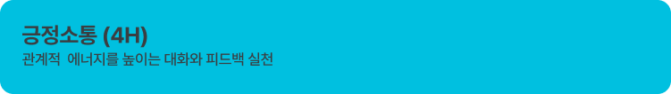 • 리더와 구성원 간 심리적 거리 축소와 긍정 대화 기반 마련, 리더의 긍정 에너지 수준 점검